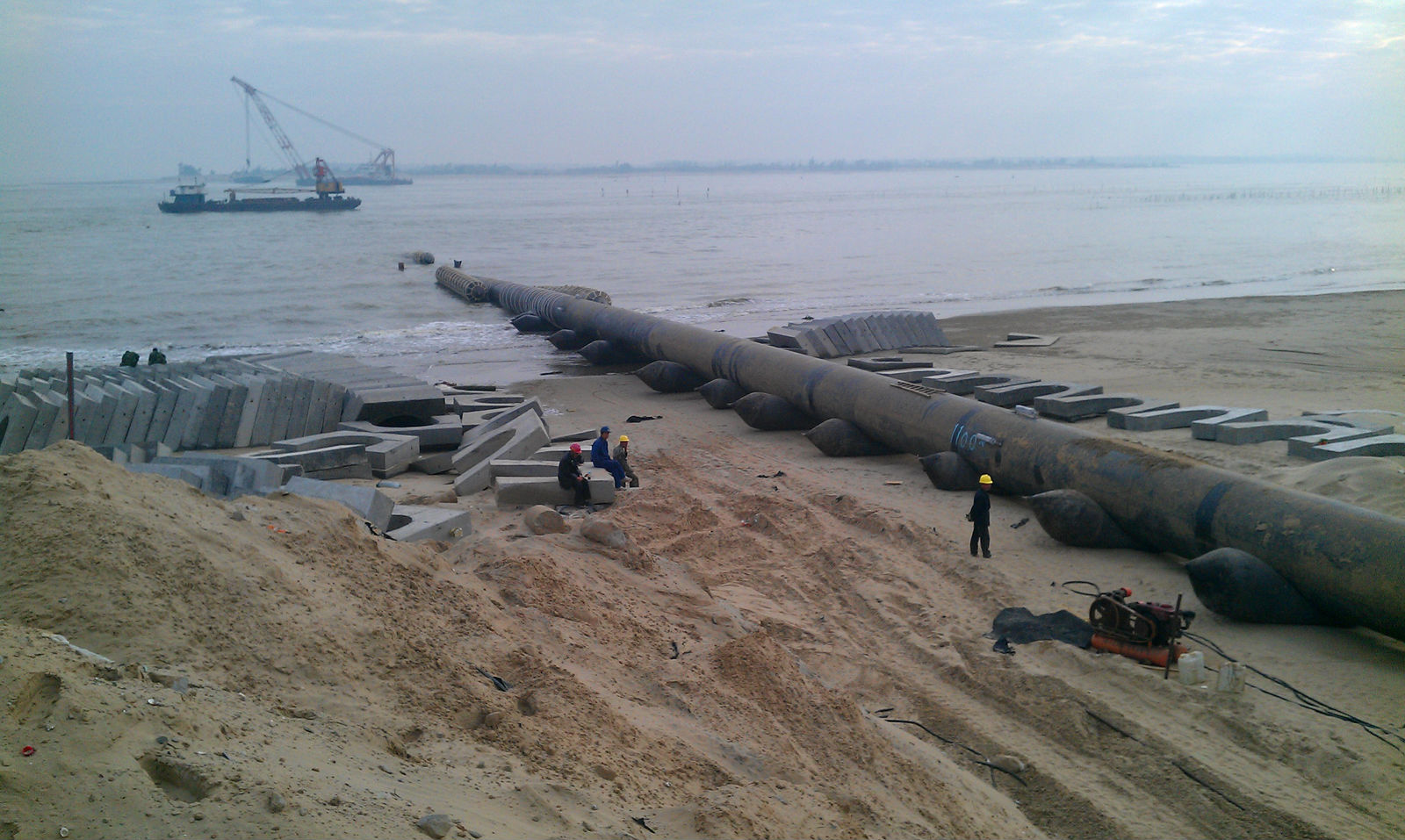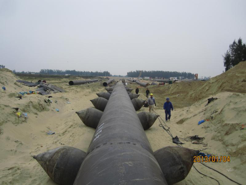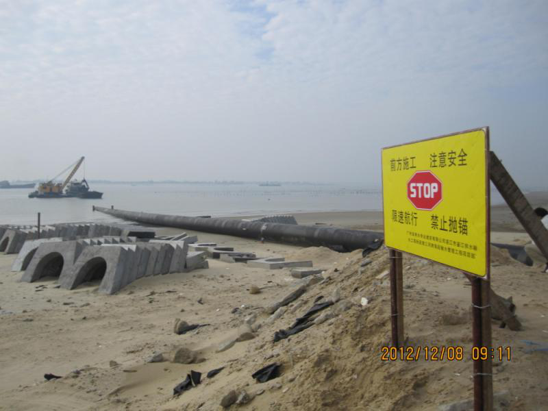 本工程为鉴江-东海岛输水工程的两根并行DN1800原水输水钢管,是确保湛江市鉴江供水枢纽工程尽早尽快发挥工程效益和供水安全保障作用的关键。采用拖管法施工,每根过河管长约1214m,两管中心间距为5米,工程造价3780万元。