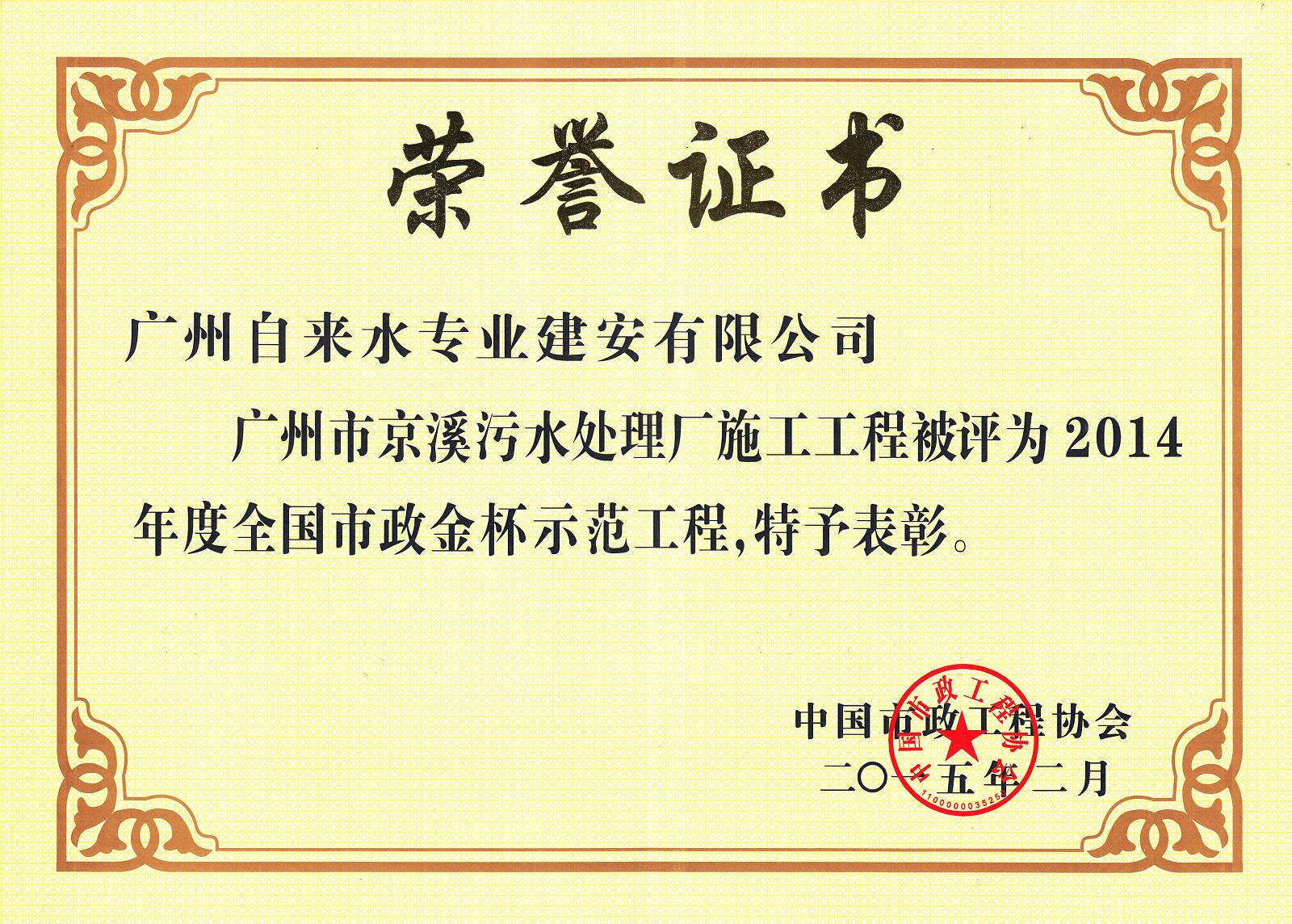 2014年度全国市政金杯示范工程-京溪污水处理厂施工工程