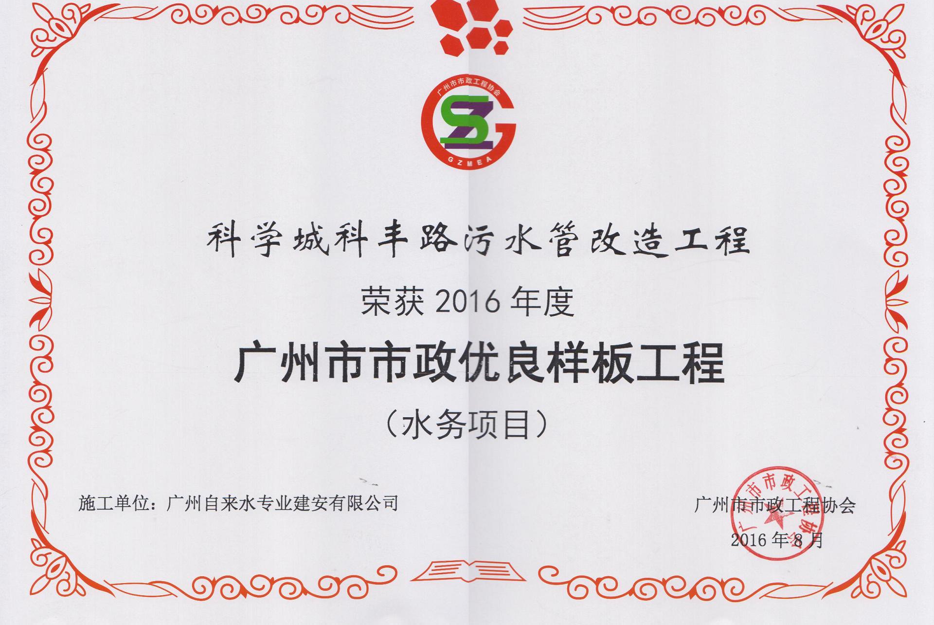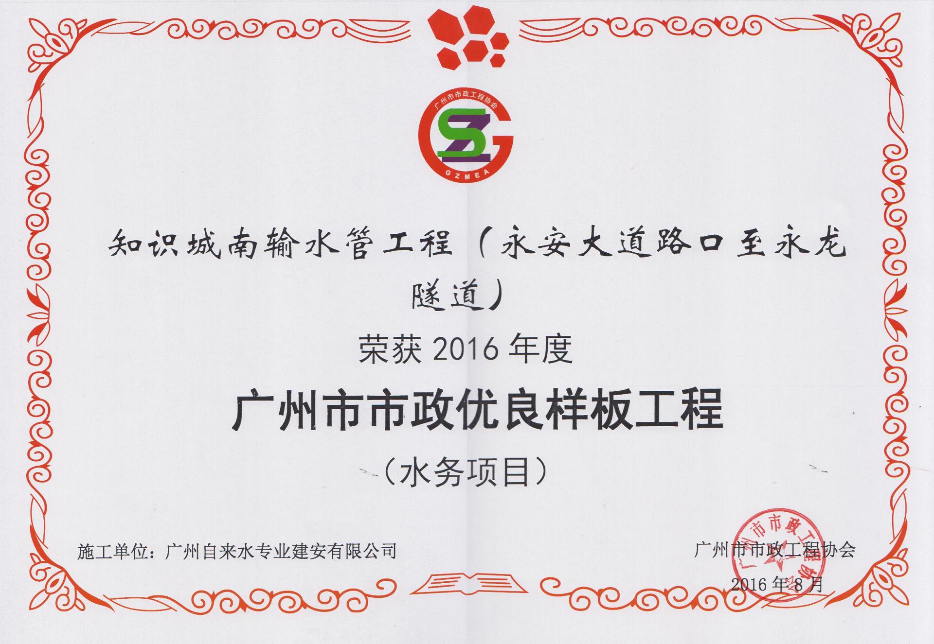 2016年度广州市市优良样板工程-知识城南输水管工程