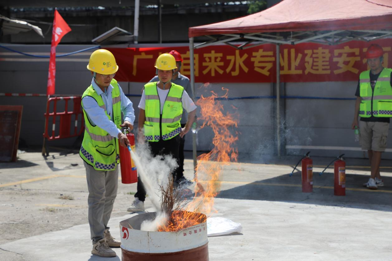 演练向全员传达并展示了灭火器的使用方法及注意事项,并在现场模拟火源进行实操演练。